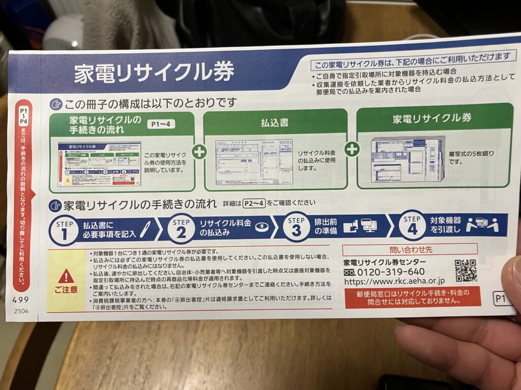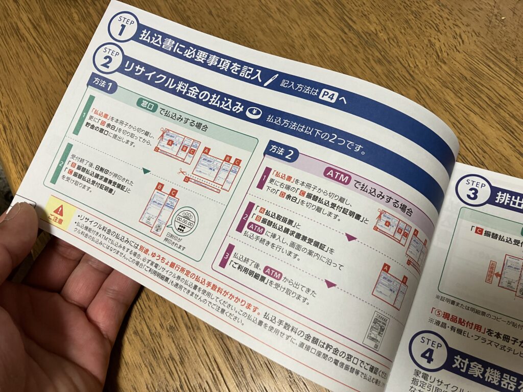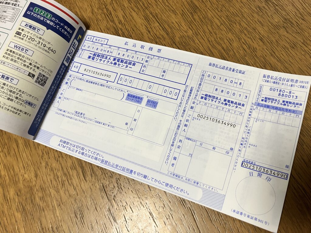 - 入金確認ができる用紙を窓口に持って行って、家電リサイクルの伝票に押印をもらう。