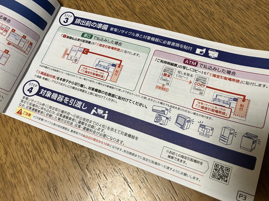 電話予約は必要ないので、郵便局で「家電リサイクル料」を納めて、それらを廃棄する家電に貼り付けて渡すだけです。